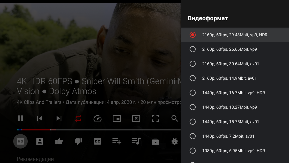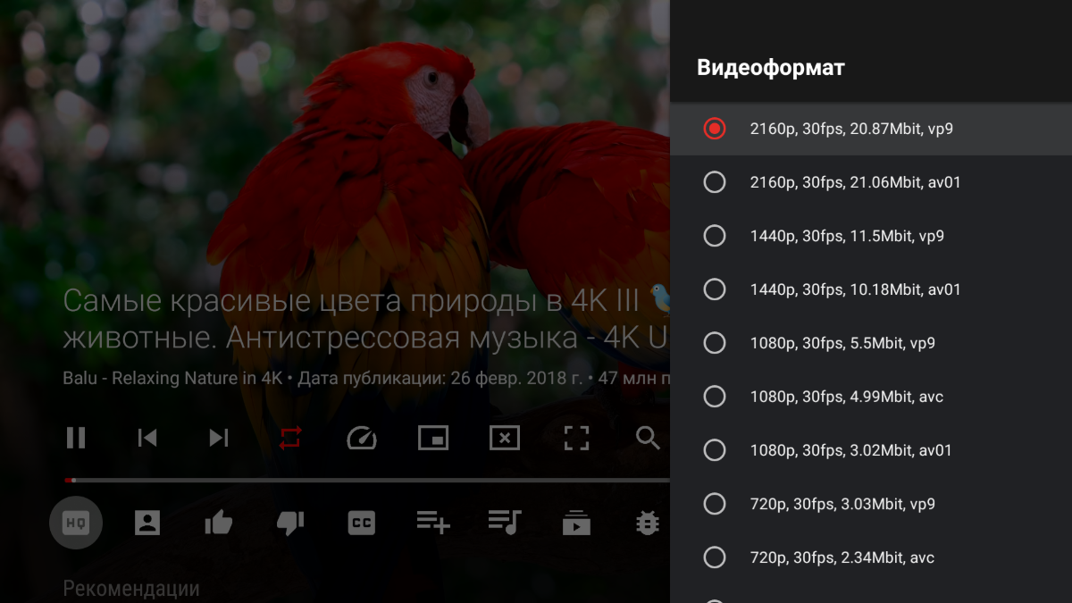 - Поддержка и воспроизведение YouTube всех кодеков до 4К