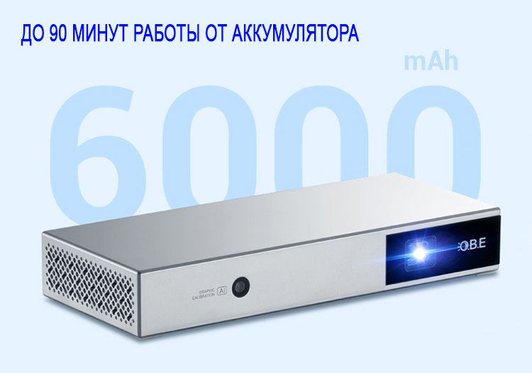 ● Встроенный аккумулятор 6000 мАч - до 90 минут просмотра автономно