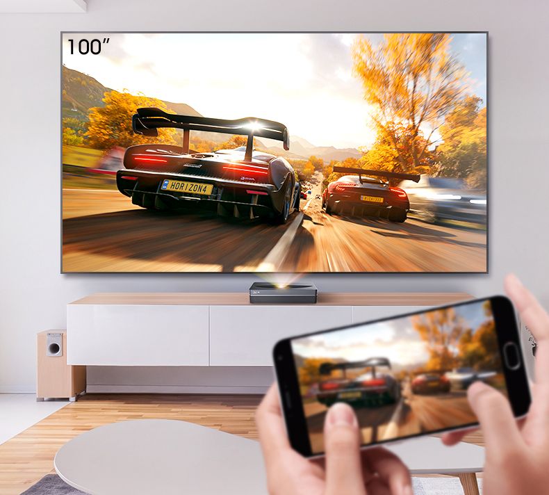 ● Ультра короткий фокус, даёт возможность создать изображение размером 100 дюймов по диагонали с расстояния всего в 19,5 сантиметра до стены или экрана