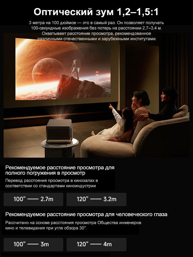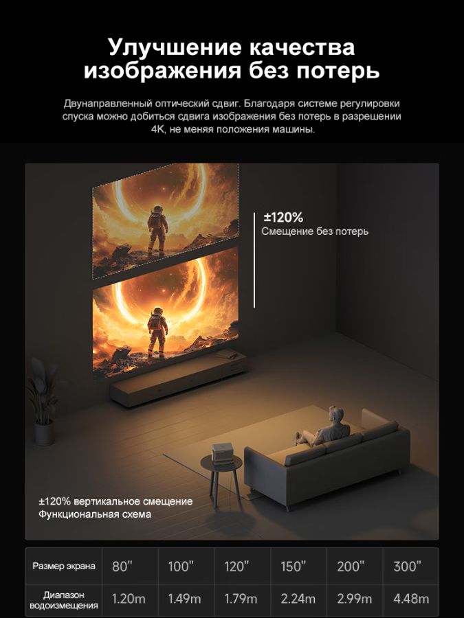 ● Встроенная линза 1,2–1,5× оптическим зумом, вертикальным сдвигом до ±120% и ±45% по горизонтали.