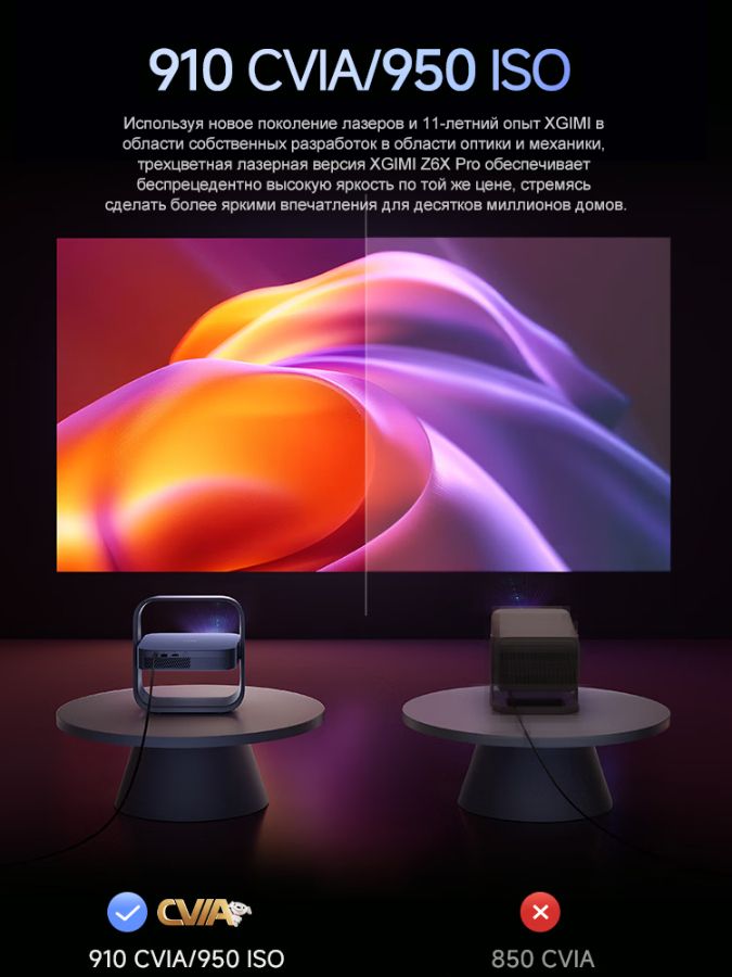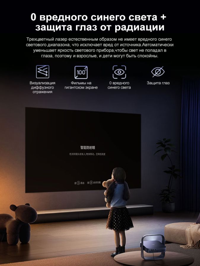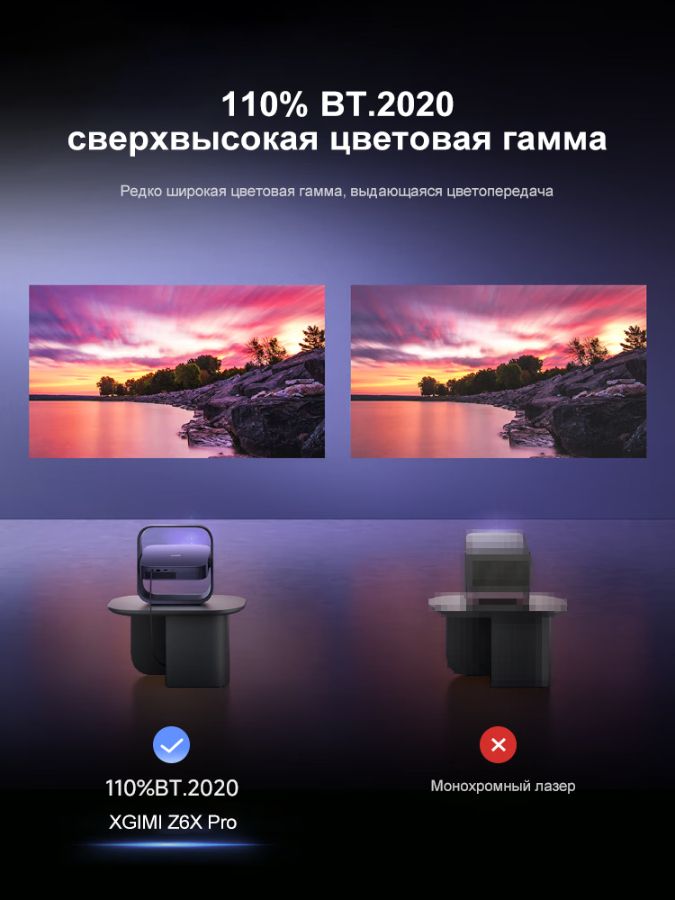 ● Трёхцветный лазерный источник (910 CVIA люмен) с высоким контрастом (~1600:1) и широкой гаммой (110% BT.2020).